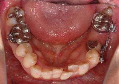 上の歯は3本不足し、下の歯はすべてありましたので、下の歯を1本上へ植えなおして(移植して)、矯正治療しました。