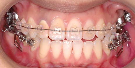 歯につけるマルチブラケット装置は、目立ちにくいものを使っても、このような治療は可能ですが、この方は、金属の装置を選択されました。